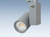High-Power-LED-COB-Schienenstrahler 45 W mit einstellbarer Lichtfarbe (3000 K, 4000 K, 5700 K), mit Adapter für 3-Phasen-Euro-Schienensystem. Hochwertiges Aluminiumgehäuse, 360° dreh-/schwenkbar. Mit Öse zur Befestigung eines Sicherungsseils (Safety). Abstrahlwinkel durch Tausch der Streulinse anpassbar (optional, Fluter 60° / Spot 30°). Flickerfreie LED. 3800 bis 4500 lm (je nach Lichtfarbe). CRI > 90