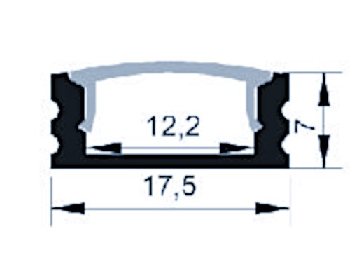 Aluminium profile with diffusor, with fixing clips and end caps. Suitable for led strips up to 12 mm width