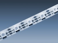 Flexible LED strip, equipped with individually addressable RGB LEDs, 18 W/m max., 60 LEDs/m, width 10 mm, length 5 m (one reel), dimmable, cutable at each LED, self-adhesive. Addressable with controller with pre-programmed special effects (e.g. LED flow lights), or with completely freely programmable controllers for individual special effects. Power supply by transformer 5 V DC
